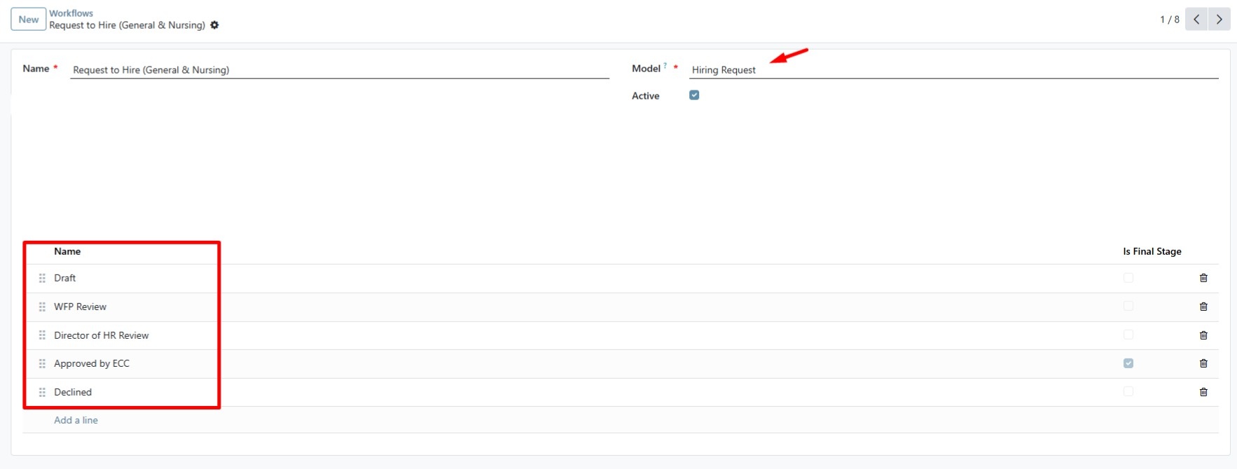 • Set clear actions for both approval and rejection, including where the request should be routed next