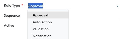 • Rule Types to categorise approval logic