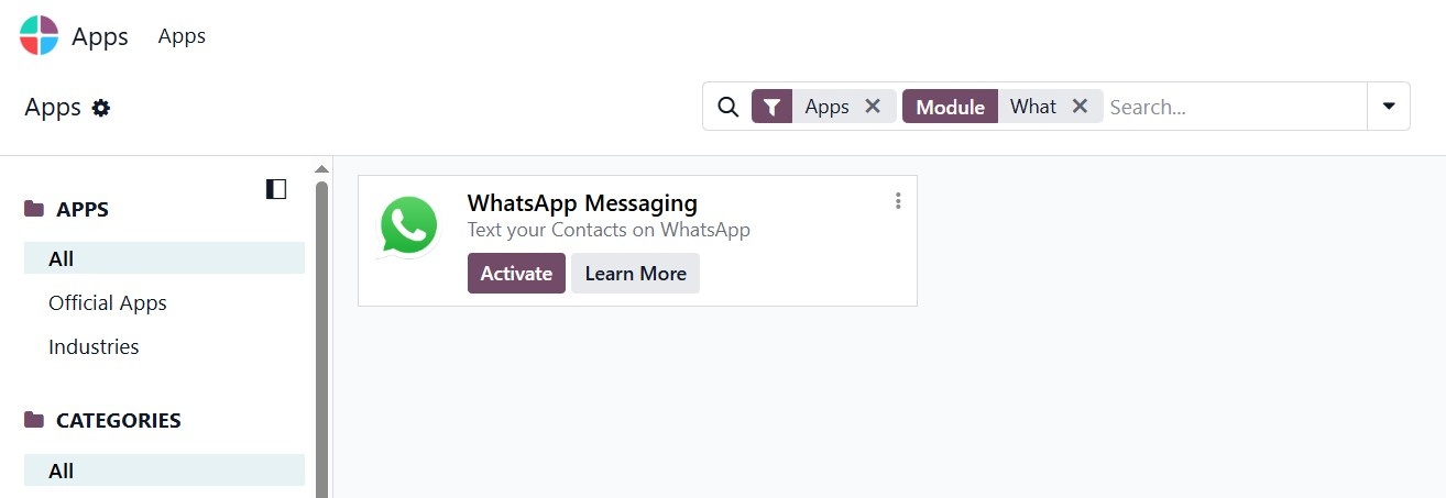 Step 1: Install the WhatsApp Module in Odoo