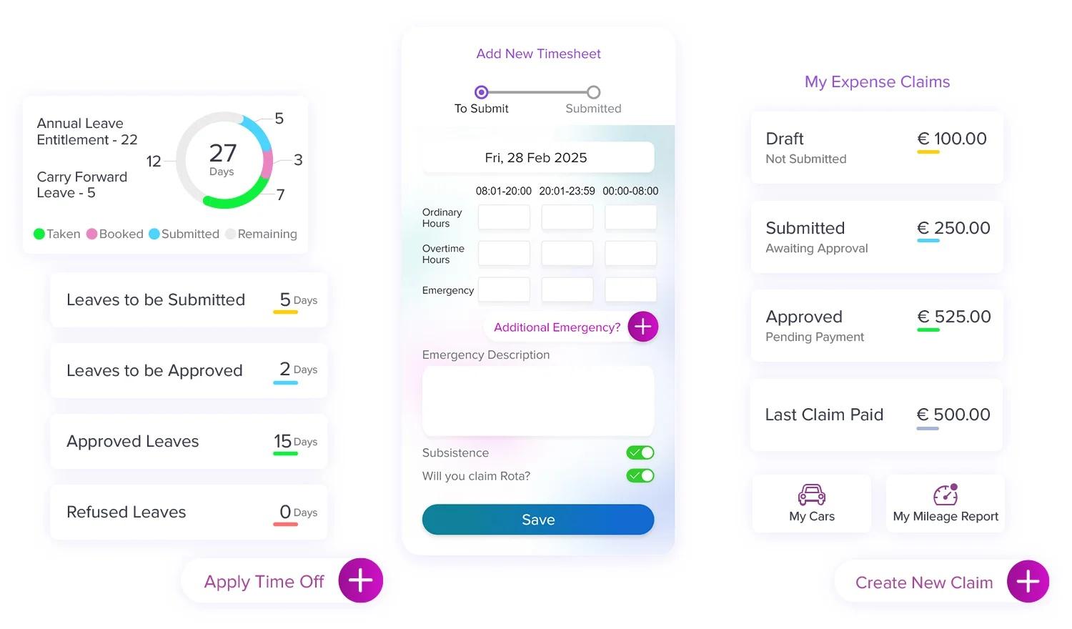 Numla HR's employee self-service portal includes all the core features, accessible via both desktop and mobile app, designed for the Irish market: